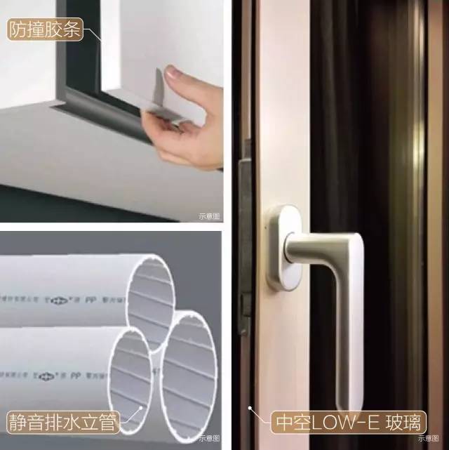 1)采用世界领先门窗品牌德国旭格,隔热断桥铝合金门窗;2)夹胶中空LOW-E玻璃,达到“8+12+8”毫米厚度;3)排水立管、洁具的消声处理;4)选用降噪地板减少上下层影响 ;5)通过防撞胶条、闭门器、收纳抽屉阻尼等细部设计,让你的睡眠,就像婴儿一样安稳。
