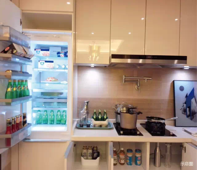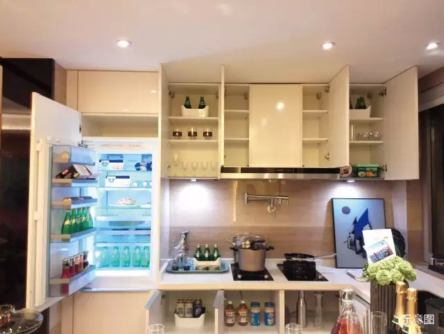 如果不打开橱柜,你能唯一发现的电器就是德国进口西门子灶台。万科调查了高端人群的烹饪**惯,需要哪些厨电,根据这项研究定制橱柜解决方案。各种食材类/调料品类/各种器皿/各种小家电…..空间分隔的智慧处理,收纳的精密划分,让每件电器都能各归其位。
