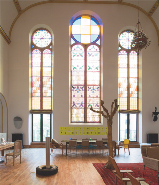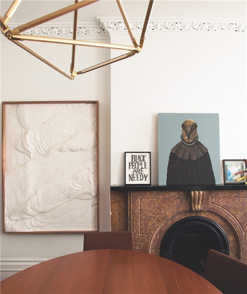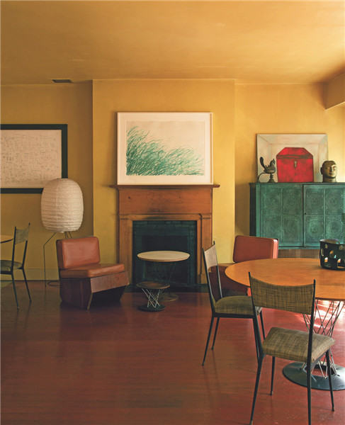 弗朗切斯科·克莱门特的家。壁炉上的绘画出自赛·托姆布雷之手,在用餐区两侧分别是让· 米歇尔·巴斯奎特和克莱门特自己的绘画。家具中有日裔美国雕塑家野口勇设计的桌子和著名建筑设计师弗兰克·劳埃德·赖特设计的木椅。