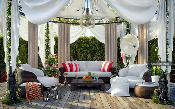 如果你生活在一个高档的社区,那么户外的景观相信是非常迷人且丰富的。与此同时,你也需要一块至少可以户外招待客人的地方,露台或者凉亭将是非常棒的选择,无论是闲散的散步谈事抑或丰富的户外社交活动,都将是非常怡情的地方,而设施与材质选择通常依赖于你所选择的风格。