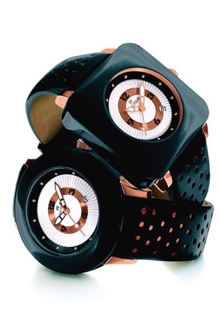 一款充满未来主义特质的腕表,尤其是带有些微圆形弧度的矩形表壳更是带来几分新鲜感。这个系列有大号和小号选择,其中大号腕表搭配简洁的橡胶表带,更显运动风情,而小号腕表则搭配穿孔皮制表带,将前卫格调稍稍收敛。