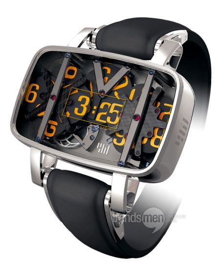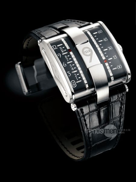 此外更有创意的一款机械表的时分显示是通过机械的传动来完成的数字显示,也就是夜光管被设计好的机械程序来编排,到了什么时间就会随时翻动夜光管,来实现明暗间的变化使得大家可以很清晰的来查看时间,像电子显示器一样来说明此时的时间,这几款是特殊的时分显示方式,而秒的特殊显示方式不是太多,我的记忆里有直线秒针显示以及会翻跟头的秒针等等,我认为这些特殊的时分秒显示方式并不是设计师一时的心血来潮而是通过独树一帜的创意来表达自己对机械表的认知,此外就是它们给人们戴表以更多的理由。