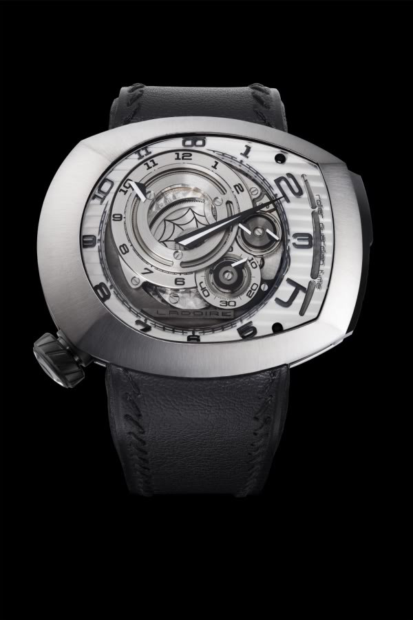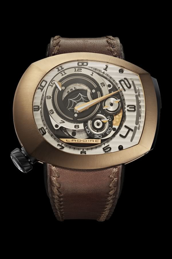 更特別的是,Masterpiece Chronograph是全球第一只採用新材質Carbontime摆輪的手錶。Carbontime這家英國公司經過精密的計算和實驗,設計製造出由單股碳纖維(monofilament carbon fiber) 游絲、透明陶瓷(ceramic)摆輪盤和鉭金合金(Tantalum-Gold)補償琺碼所製作的全新Carbontime摆輪,具有防磁和不受溫差的優點,也比傳統銅鈹合金具有更佳的等時性。以獨立製錶師之姿推出足以和百達翡麗、寶璣和雅典等這些大集團相抗衡的全新材質摆輪,也難怪Kari Voutilainen今年大放異彩。