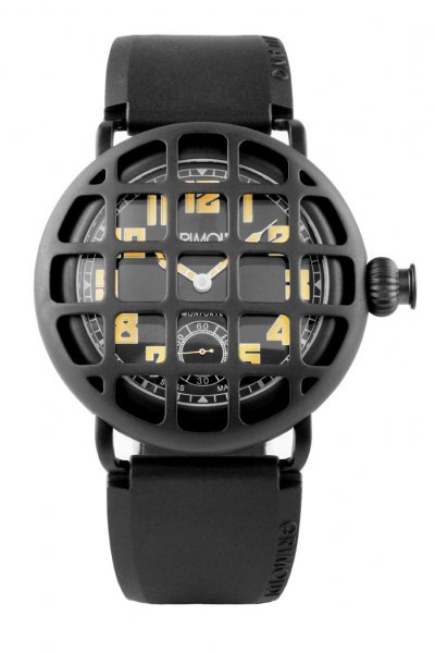 Monforte腕錶,不鏽鋼、不鏽鋼鍍上PVD黑色層膜或18K玫瑰金包金錶殼搭配同材質金屬保護罩,直徑40毫米、含保護罩則為44毫米,Unitas 6498-1手上鍊機芯,礦物水晶玻璃鏡面 ,防水50米,黑色天然乳膠錶帶、高級鱷魚皮或高級蟒蛇皮錶帶,建議售價:91,800(PVD款式) 、 81,000(不鏽鋼款式)。