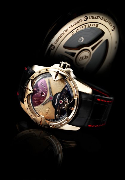 Capture陀飛輪手錶由Valerie Ursenbacher設計,4N 18K玫瑰金錶殼,錶徑43毫米,厚度15毫米。內置HD3 VU001 機芯,具時分顯示及一分陀飛輪裝置,動力儲能達100小時。藍寶石水晶玻璃鏡面及後底葢,防水50米,另有白金、鉑金與白金鑲鑽及玫瑰金鑲鑽款式,各限量33只。