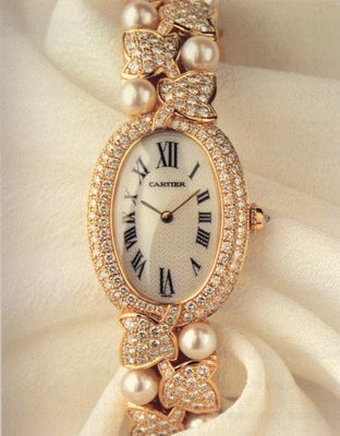 卡地亚家族在19世纪中叶已是闻名遐尔的法国珠宝金银首饰制造名家。路易.卡地亚是当时颇受皇室权贵赏识的金饰工艺家。1888年,卡地亚尝试在镶嵌钻石的黄金手镯上装上机械女装表。1904年为老朋山度士(SANTOS)而制造的金表一跑打响。从此卡地亚手表一直是上流社会的宠物,历久不衰。