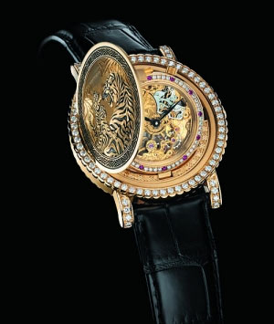 除了精密复杂的技术,君皇表还采用了优质的钻石和宝石,生产珠宝腕表,让这个品牌和高品味结下不解之缘。