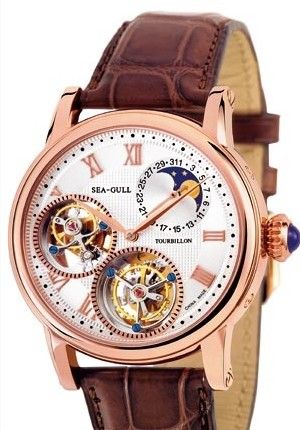 11 海鸥表日历月相双陀飞轮玫瑰金表