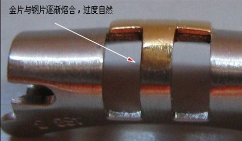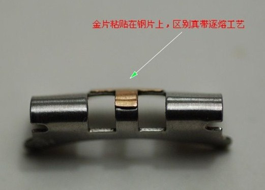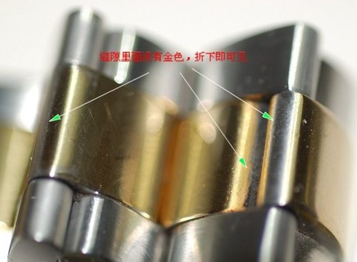 实心间金比较容易鉴别,因为多数假表的间金部位是在表带装好后再刷的漆,这就很容易有地方刷不到,而又有地方刷过界了。实心全金,初学者就需要看带扣印记了。