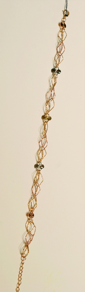 金叶片手链简约时尚,适合阳光清爽型女士,可搭配不同风格服装。