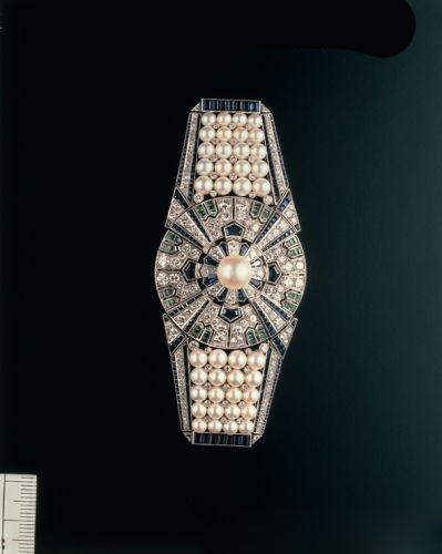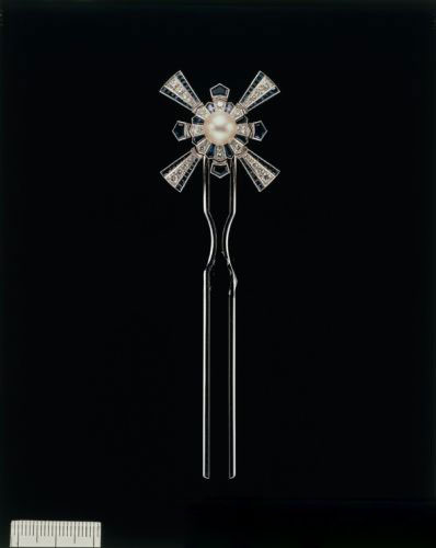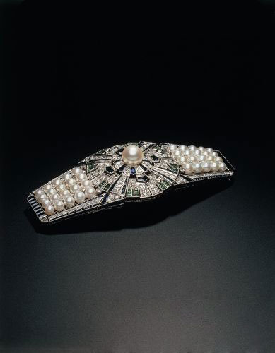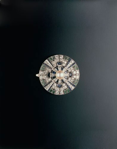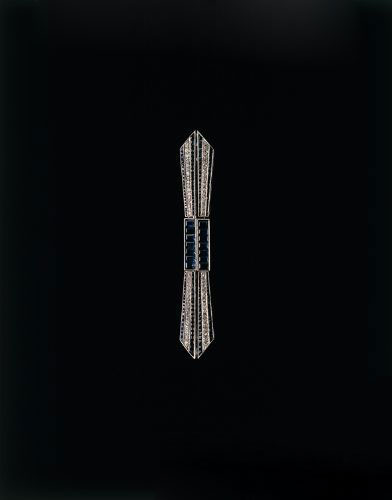Yaguruma (“矢车”,意指“箭轮”)是个多功能的百变饰扣,能够分拆成十二件可替换的配件,开创多功能首饰设计的先河。Yaguruma于一九三七年在巴黎博览会上展出,其创意精巧的设计在当时已成为全场瞩目的焦点。这款饰扣采用多种金属及宝石制造,包括18K黄金、18K白金及铂金、共重3.48卡钻石、8.47卡蓝宝石、0.70卡绿宝石及41粒珍贵日本养珠,尺寸长3.25厘米及阔8.75厘米。