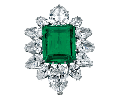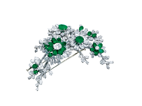 BVLGARI铂金胸针,镶嵌祖母绿宝石与钻石,创作于1958年。这枚胸针还可作为祖母绿钻石项链中央部分的吊坠佩戴。它的珍贵还在于这是理查德·波顿送给伊丽莎白·泰勒的结婚礼物。 2009 非常完美 Sophie's Revenge