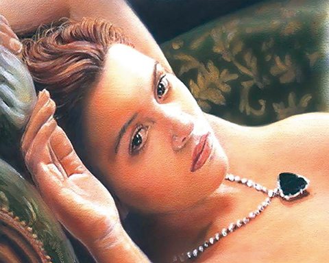 在杰克的素描中,罗丝以美丽的身体曲线映衬着“海洋之心”的华丽尊贵