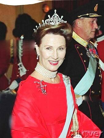 garrard到底有多少作品在英国皇室内,我不知道,又有多少在其他国家皇室内?我也不知道,能流传到其他皇室的原故很简单,要知道维多利亚女王曾经被叫做欧洲的外祖母,因为她把自己的孩子们为了政治目的散播到全世界各地,比如下图中呆在挪威宋雅王后头上的那顶王冠。