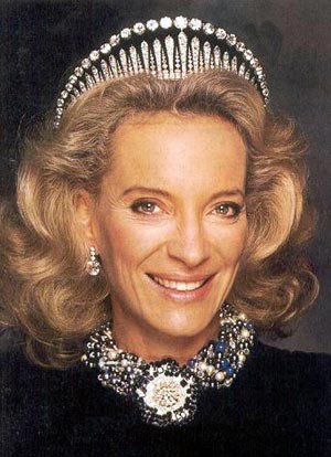西尔维娅王后胸前那条紫水晶项链,本属约瑟芬皇后的,后西尔维娅王后首次将它改装成王冠,现为瑞典维多利亚公主所用。