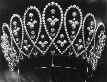 这顶王冠制造于1870年,在1934年希腊公主玛丽亚与肯特公爵乔治王子结婚时,它被送给了公主,现在它属于公主的儿媳妇肯特公爵夫人。