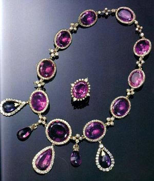 1846年著名的法国珠宝商为国王路易菲利浦的妻子阿美丽亚订做了这一全套首饰,它在1997年被最后一任De Paris伯爵的妻子在日内瓦出售。