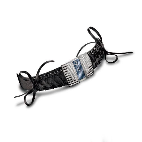 Léon Hatot Zelia Sesame Audace系列钻表,黑色丝带交叉装饰着鳄鱼皮表带,略显野性与叛逆。