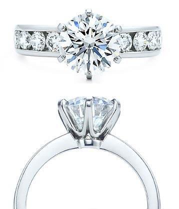 圆形主钻+槽式排钻:槽式镶嵌圆形明亮式切割钻石的指环将经典的六爪镶嵌钻石的闪烁光采提升至极点。