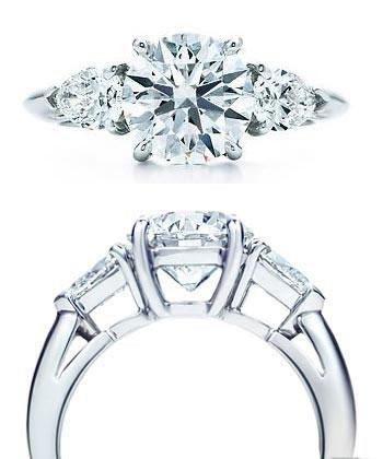 圆形配梨形侧钻:两颗梨形侧钻将优雅风采完美赋予这颗经典的圆形明亮式切割主钻。