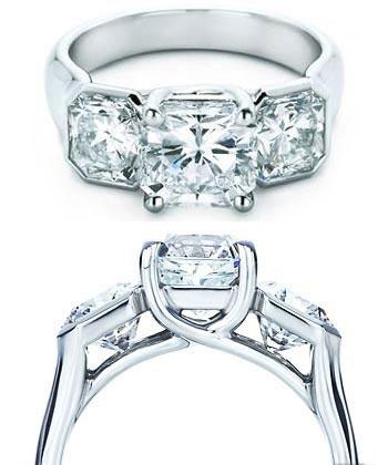 方形三钻:两颗精巧匹配的包围镶嵌Lucida侧钻簇拥Lucida主钻,完美表现出优雅的风格。