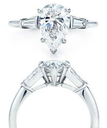 梨形钻戒侧钻:这款狭长的梨形钻石是女性的纤纤玉手的最佳伴侣,惹人眼目。梨形主钻在长形侧钻的配衬下,优雅迷人。