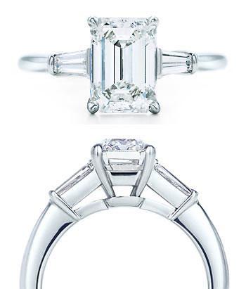 祖母绿尖形侧钻钻戒:狭尖形侧钻的钻戒配衬大胆的祖母绿切割主钻,雍容华贵。