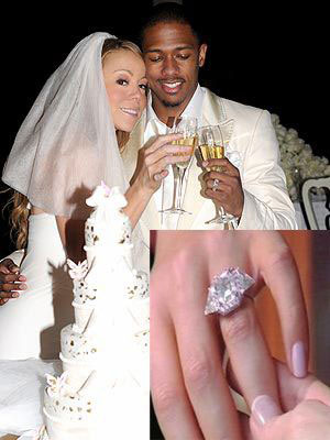 Mariah Carey和歌手演员Cannon第一次见面是在2005年,在当年的Teen Choice颁奖典礼后,Nick约会了Mariah。2008年5月,在巴哈马的海滩,夕阳中举行了浪漫的婚礼。Mariah Carey的17克拉价值250万美金的婚戒,也成了女星之最,成为手上最有“料”的女明星。