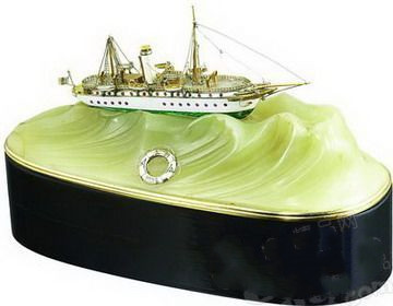 由黄金、纯银、珐琅、碧玉、黑檀木及红宝石制成的Van Cleef & Arpels帆船模型用极致奢华的材质描绘出了上世纪初纽约头号人物Eugene Higgins先生最挚爱的帆船,他曾于其帆船上招待过丹麦国王Christian十一世、俄罗斯大公Alexis及德意志帝国皇帝William一世。这件几可乱真的艺术品由他亲自委托Van Cleef & Arpels制造。
