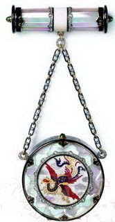 凤凰,张开优雅的羽翼停留在Cartier的创作中。这款Cartier珠宝工艺品,其实是一个为女性特别设计的粉盒加唇膏盒。粉盒上那只秉阴承阳、充满灵性的吉祥珍禽展开珐琅质的宽大羽翼,在珍珠层做成的云朵间翱翔。而打开粉盒,里面还设有一面镜子和一个化妆品隔间。
