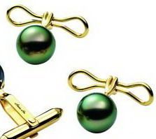 圆润的珍珠加上丝毫不刻板的黄金扣,呈现一对略带俏皮感的珠宝袖扣。