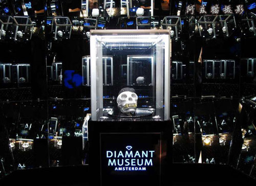 这里还可以看到关于钻石的一些有趣展示,比如历史上著名钻石大盗的新闻简报,让你猜猜哪颗是真钻的游戏,大多数人都猜不到,混在一些类似钻石的石头里,其实真钻的光芒并非最耀眼的。走廊的墙上挂着镶“钻”的梵高名画“星空”,说实话有点俗气,还不如旁边那个钻石骷髅更酷。