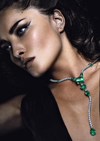 伯爵Limelight Party高级珠宝系列的祖母绿项链,整串以扑克牌花色形状切割的钻石点缀的项链,围绕着单颗重达26克拉的稀有哥伦比亚祖母绿,并以同一产地的17颗祖母绿,共同刻划出女性优美的颈部线条。充满性感魔力的祖母绿唤醒拉斯维加斯的欢乐赌场气氛。