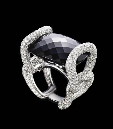 不论是单件穿戴或是搭配尖晶石与钻石交错镶饰的长形链坠配戴,都表现出明亮简洁的当代设计风格。再没什么比佩戴钻石镶饰的黑色尖晶石指环,更能表达无比的优雅气质。充满了几何线条及摩登珠宝的设计,伯爵嬉戏于黑色调宝石与钻石的对比反差,为热爱彻夜派对狂欢的女性,创造出另一种独特的摇滚风格。