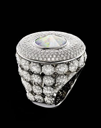在派对的舞池中央热情舞动的女子,配戴着镶嵌4000颗钻石及彩虹光泽的蛋白石的珠宝,展现出夺目的耀人风采。闪烁的项链、指环及耳环钻饰,编织成一首令人着迷的舞曲。恍若蒙地卡罗赌场的豪华水晶灯,Limelight Party水晶坠饰跟随着女性轻舞的脚步,缓缓地摇曳生姿,创造出光影与透明质感的生动闪耀。