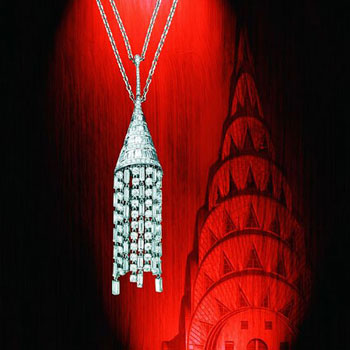 18K白金项链,灵感源自克赖斯勒大厦的建筑结构与曲线,镶嵌239颗圆形美钻 (约重22.52克拉)