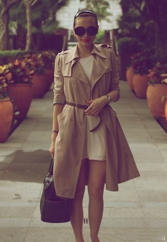 初秋混搭法则二:长款风衣加身,维多利亚式的性感风骚。小贝的老婆是将风长驾驭的最完美的女性之一,把头发束起来,里面加个简单的长裙就ok啦。