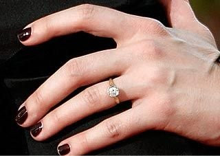 她将要嫁给英国喜剧演员拉塞尔·布兰德,当这对情侣在印度骑大象看烟花时,布兰德向这位美丽女孩求婚了。凯蒂的戒指是黄色,中间镶嵌着3克拉的钻石,看上去很华丽。