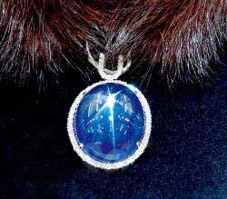 这枚被誉为“希望之星”的蓝宝石产自斯里兰卡,是一颗重达160克拉的星光蓝宝石,素面椭圆形,大小状如鸡卵,颜色鲜艳饱满蓝中略微带紫,6条星光舒展明亮完美无缺。据说冥冥之中星光蓝宝石蕴含着无上的智慧、勇敢和力量,但凡见到美丽星线和触摸过星光蓝宝的人都将收获空前好运,它的6条美丽的星光分别象征着财富、权利、运势、健康、美满和希望。