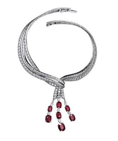 18K白金镶嵌7颗卵形缅甸红宝石,34.73克拉,和320颗钻石,72.19克拉。