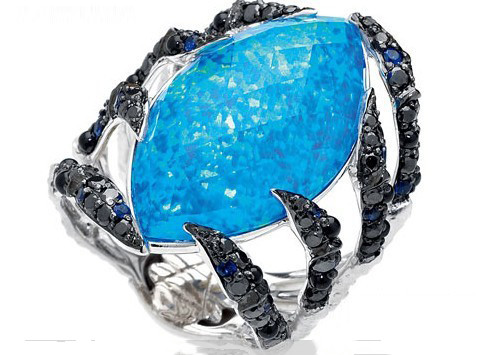 Stephen Webster 18K 金镶黑钻石及贵黑欧泊戒指