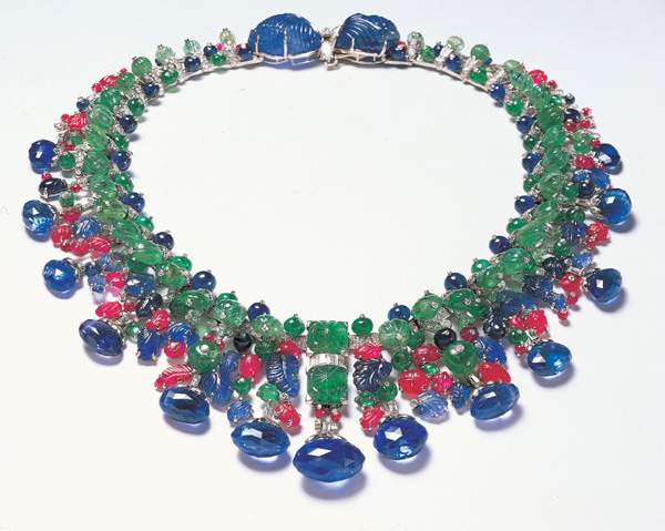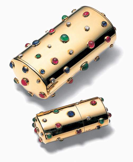 黄金,蓝宝石,弧面型红宝石和祖母绿,明亮式切割钻石