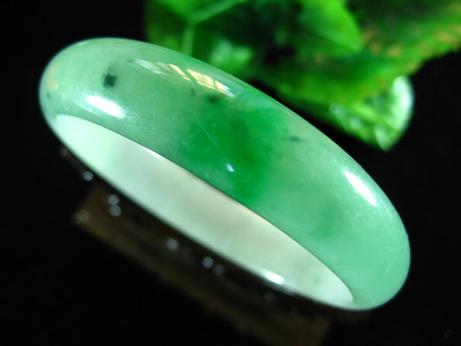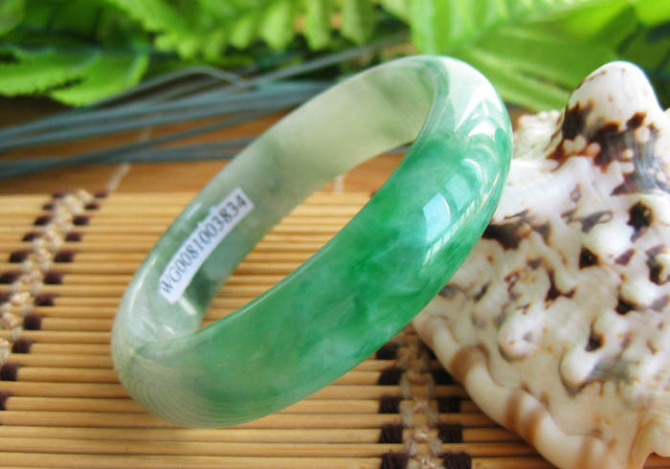 白地青种的绿、白分明,底色一般较白,绿色鲜艳,虽然水头不好,但也有很多年轻妇女购买。白地青种一般只适合做手镯、雕件、挂牌。小型挂件或手镯价格一般在1千到1万元之间。价格取决于种的好坏和绿色范围大小和色泽。