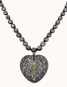 条古董风格的Stephen Russell的心形项链是她大爱的单品,镶嵌着22克拉的钻石哦。
