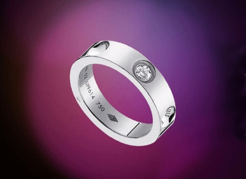这款珠宝附有一个由路易威登工场特别制作,以Monogram Mini帆布制造的轻巧珠宝盒。这款小号的白金empreinte戒指镶有一颗钻石,并旁边刻有LV标志。它为Emprise系列设计锦上添花。