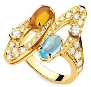 Bvlgari宝格丽彩色宝石镶钻黄金戒指