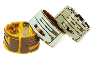 多种色彩的宽戒指上是经过夸张放大的Fendi LOGO,视觉效果非常奇特。