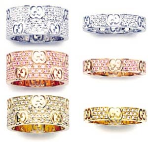有金、银和玫瑰金三种颜色,GUCCI的LOGO镶嵌其间。