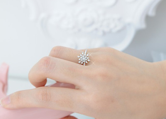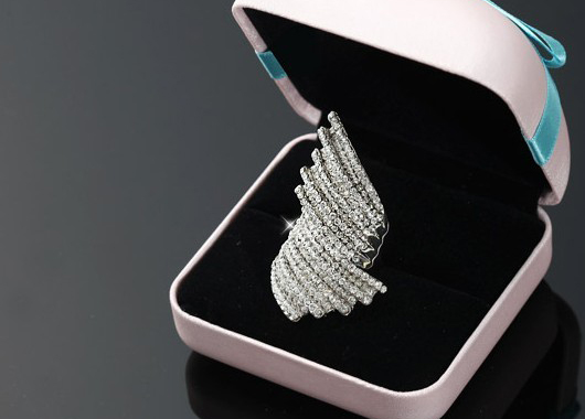 指间翩翩起舞的蝴蝶,微微颤抖着美丽的翅膀,静是一种不忍心打扰的温柔,动是跳跃的精灵,细细的小水钻,更添加了花戒的精美。