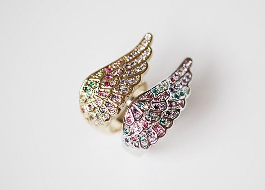 飞鸟的翅膀,张开的时候特别的绚丽多彩,有一种空灵的美丽,翅膀上点缀着各种颜色的宝石,像飞鸟斑斓的羽毛一样耀眼。
